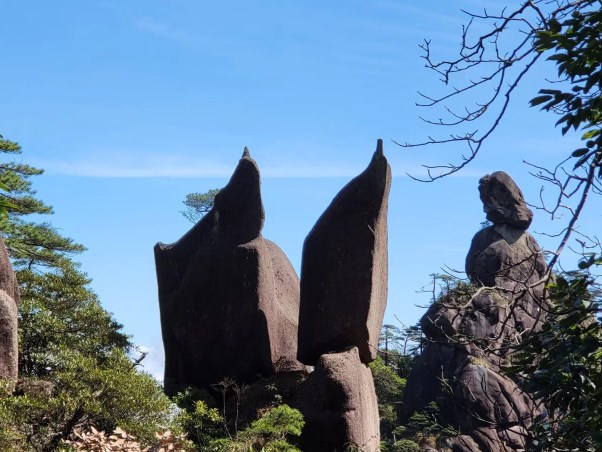下午:中餐后走世界最高最长、海拔 1600 米的高空栈道,观【西海岸景区】(游览时间不少于 1.5小时) :观音送子、飞仙谷、妈祖导航、猴王观宝等,接着往【阳光海岸景区】(游览时间不少于2 小时) 返回。适时结束行程,缆车下山,车赴三清山脚下(车程1.5 小时) ,晚餐后入住酒店。